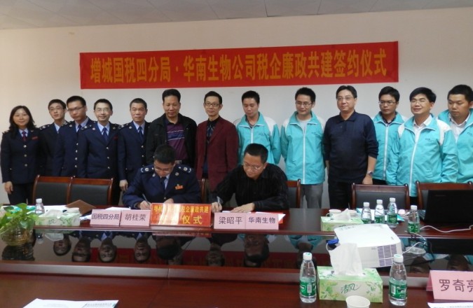 “增城國稅四分局·華南生物公司稅企廉政共建”簽約儀式順利舉行