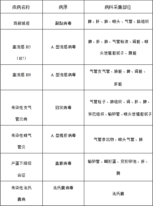 對于不同的疾病應(yīng)采集不同的部位,不可盲目采集。列表中病料采集部位在前的表示發(fā)病時含毒量較高排位較前,采集病料應(yīng)注意。